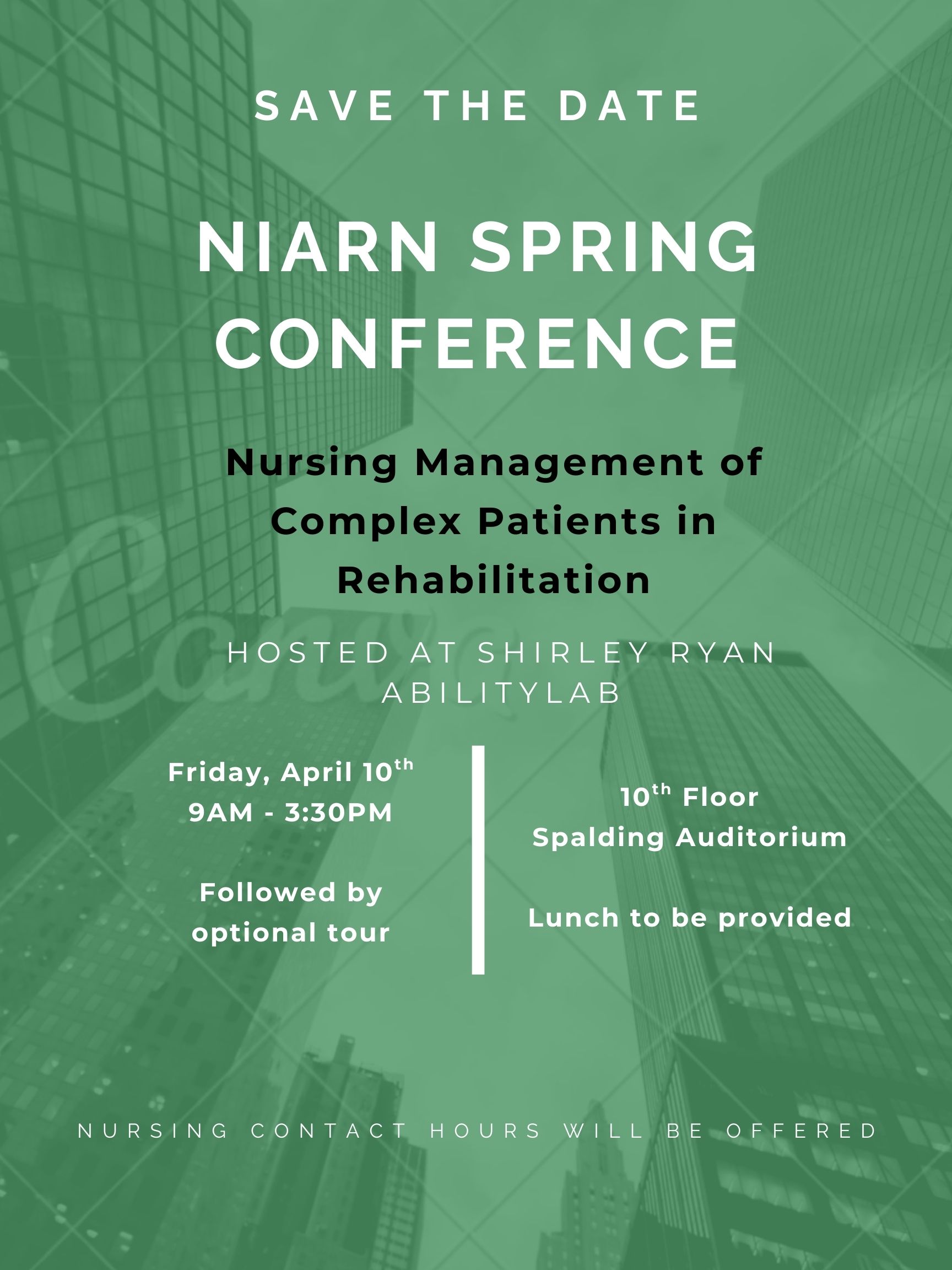 Join NIARN for our spring conference event at Shirley Ryan Ability Lab. The conference offers 5 contact hours of continuing education. This education offering is being offered in partnership with the Northern Illinois Association of Rehabilitation Nurses and Shirley Ryan AbilityLab. There is an optional tour of the facility after the event for those coming from out of town.